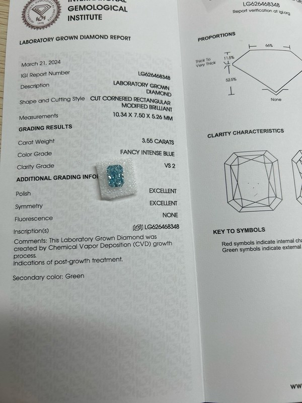 3.55ct FANCY INTENSE BLUE Lab dewasa Biru Diamond CVD VS2 2EX N IGI.