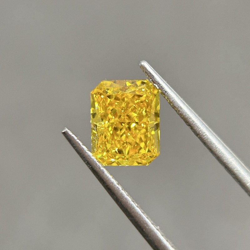 1.27ct Diamanten Lab Tumbuh Radiant Potong HPHT Fancy Cerah Oranye Kuning VS1 2EX N IGI
